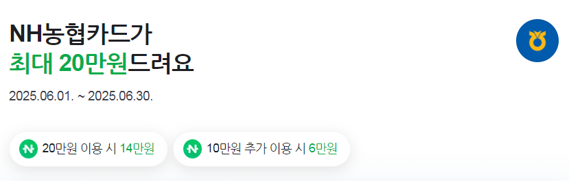 2-9. 농협카드 6월 캐시백 (최종 지급 20만원)