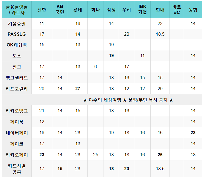 이번 포스팅도 제가 직접 하나씩 모든 금융 플랫폼과 웹사이트를 방문하고 최고의 캐시백 혜택만 정리해 놓았습니다