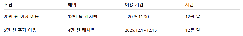 총 혜택: 최대 16만 원 캐시백 (1인 1회, 평생 단 한 번!)
