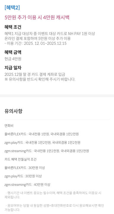 - 농협카드 신규 혜택은 평생 단 한 번만 지급