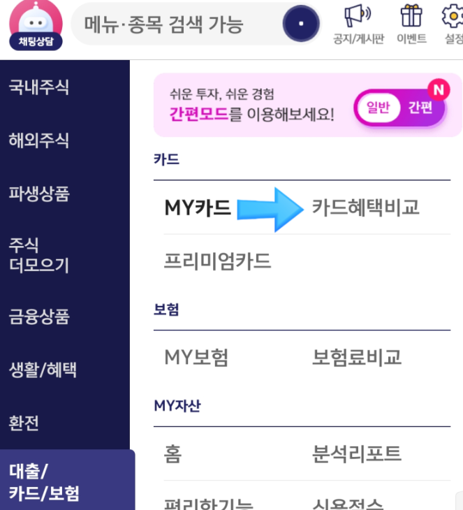 - 경로: 키움증권 앱 → 메뉴 → [카드혜택 비교]