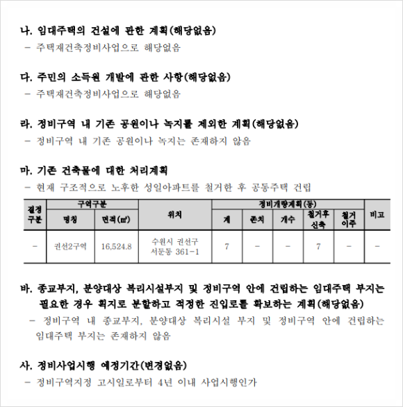 성일아파트 재건축은 이러한 변화 흐름의 출발점에 놓여 있는 사업입니다. 관리처분인가 이후 공사에 착수하게 되면, 수원 서부권 전체의 가치 지형이 한 단계 더 상승할 것으로 판단됩니다.