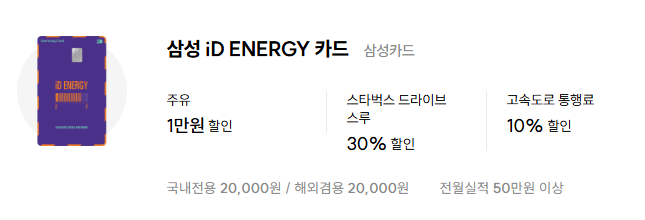 삼성 iD ENERGY 카드는 자동차 관련 생활비를 폭넓게 커버해 주는 카드입니다.