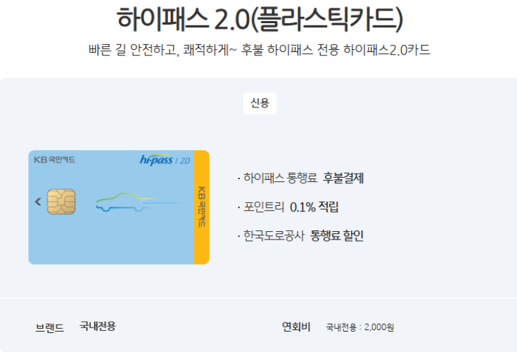 - 이 경우 하이패스용 카드에 연회비 2천원 추가