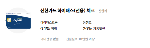 - 카드사에서 제공하는 통행료 할인, 주유 할인 같은 부가 혜택이 거의 없다