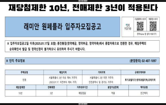 | 래미안 트리니원 청약-청약자격, 일정, 안전마진, 분양가 상한제와 실거주의무 30억 로또 분석 (0) | 2025.11.01 |