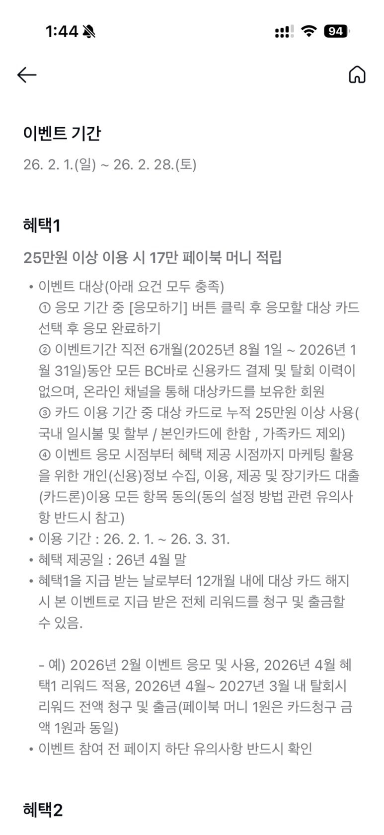 | 2026년 3월 신용카드 캐시백ㆍ페이백 및 카드테크 상세 정리 (1) | 2026.03.02 |