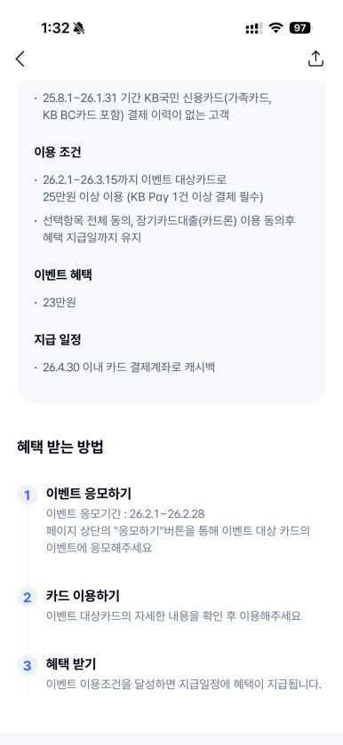 KB Pay 결제 1건과 마케팅 동의가 필수 조건이니 신청 시 체크하시기 바랍니다.