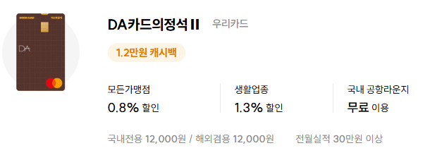 실적 압박에서 벗어나고 싶은 분들에게 적합한 신용카드입니다. 평소에는 전월 실적 조건 없이 할인을 받다가 여행 직전 달에만 최소한의 실적을 채우면 라운지를 이용할 수 있습니다. 무실적 카드군 중에서 라운지 혜택을 품고 있는 드문 사례라 실속파 여행객들에게 인기가 높습니다.